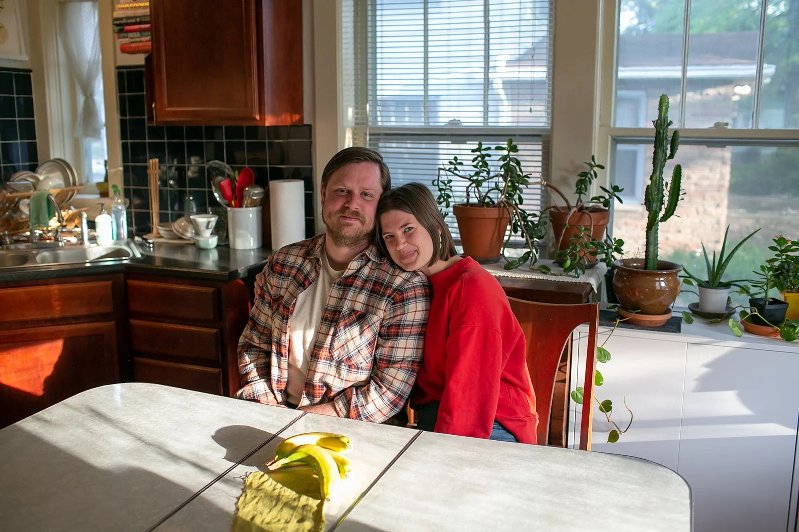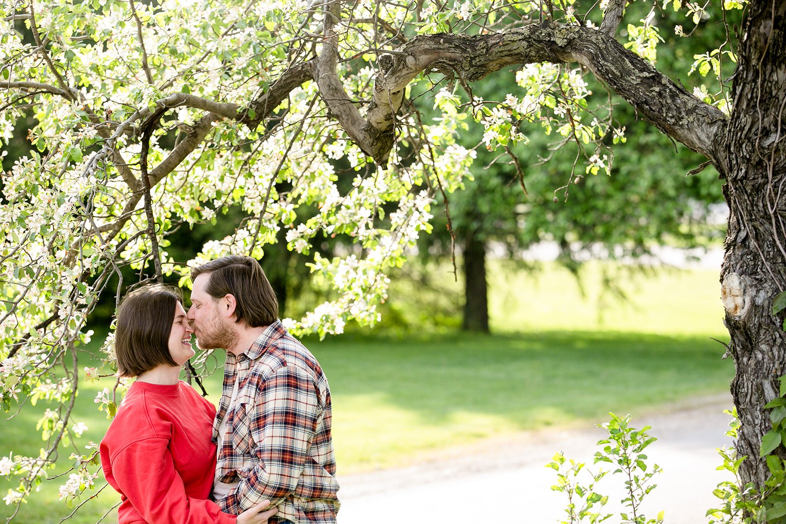 I had the pleasure of capturing Ashley and Cole's engagement photos during a beautiful spring day in Iowa. Being Ashley's cousin, I was excited to capture their love story in a way that reflected their personalities and style. The beautiful blooming trees served as the perfect backdrop, and we also took some casual shots of the couple in their apartment, adding a personal touch to the photos.